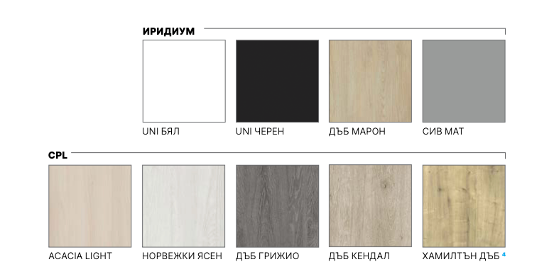 Моделът се предлага с безфалцово крило, скрити панти и магнитна брава + 300 лв.
